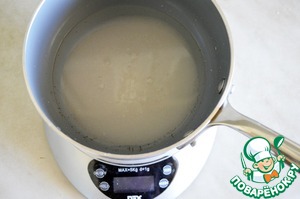 Параллельно прогреваем сливки с оставшимся сахаром (15 г).
