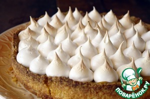 Отправляем в хорошо разогретую до 230 градусов духовку под гриль чтобы пики меренги подрумянились.