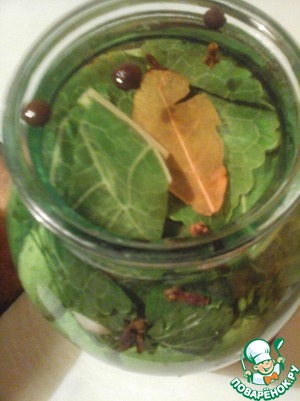 Сделать маринад. В кипящую воду опустить соль, сахар, лавровый лист, гвоздику, душистый перец. Прокипятить 5 минут. Добавить уксусную эссенцию, прокипятить еще 2-3 минуты. Залить полученным маринадом огурцы доверху. У меня огурцы последние, крупные, их очень плотно в банку не уложишь, поэтому на 3-х литровую банку нужно 1,5 л маринада, на 2-х литровую - литр. Если огурчики маленькие, расход маринада меньше.