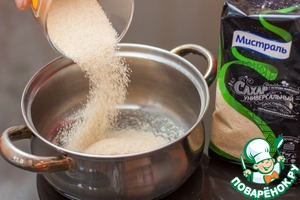 Готовим карамель. В кастрюлю с толстым дном высыпать коричневый сахар