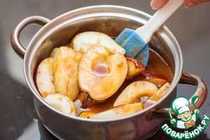 Положите груши в карамель и тушите их под крышкой, пока они не станут мягкими, изредка помешивая