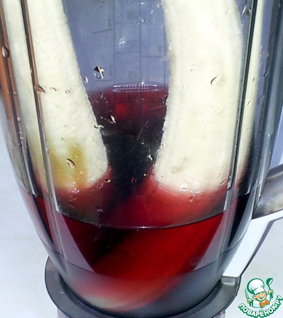 Положила в блендер с виноградным соком бананы.