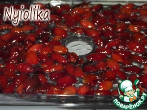 Разложить на поддоне электрической сушки. Сушить при температуре 55 градусов 4-5 раз по 3 часа. Слива становится пластичной, при нажатии жидкость не выделяется.