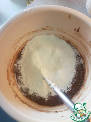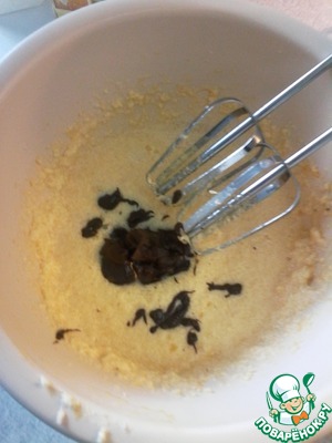Добавляем растопленный на водяной бане шоколад и соду гашеную уксусом или разрыхлитель. Перемешиваем.