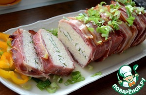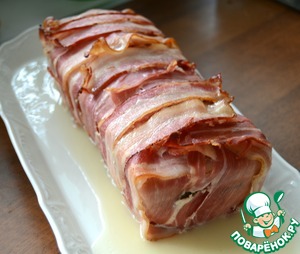 Концами бекона, что у нас свисали, "запеленать", прикрыть плотно