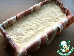 Половину нашей взбитой массы выкладываем на бекон.