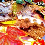 Винограда много у меня не было(то что на лозах осталось,основной урожай пошол на вино и уксус),поэтому в начинку кроме винограда добавила личи,и от этого получился запах и привкус розовой воды.наверное форма у меня оказалась маловатая,при формовке осталось немного теста и намазки.я его раскатала потоньше,намазала,усыпала каплями арахисовой пасты,свернула,и уложила улиткой,и выпекла,в конце покрыла белками как в основном рецепте.вот так вот у меня получилось 2 в 1.оба пирога ОЧЕНЬ удались.