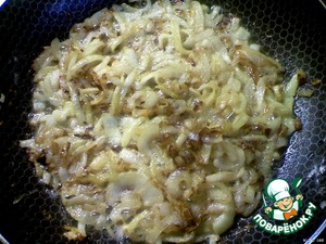 Далее добавить муку и хорошо обжарить (чтобы лук был хрустящим).