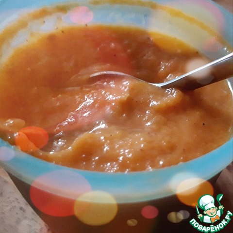 • Прямо в сотейнике разбиваем блендером.