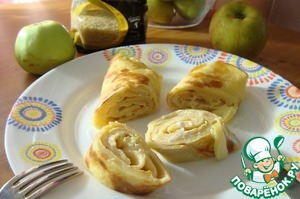 Рецепт «Блинный рулетик с яблочным припёком»: