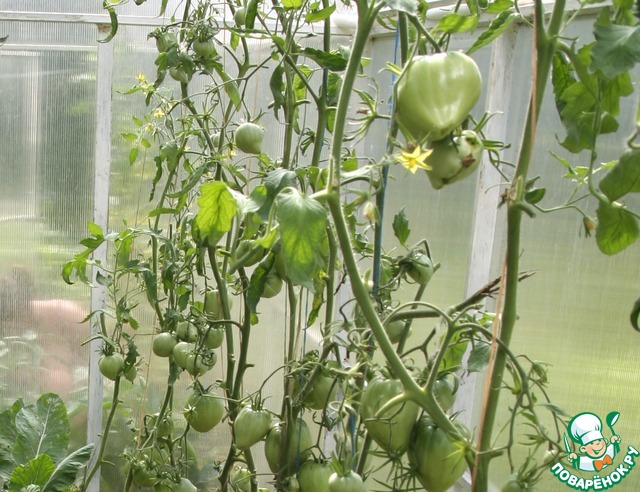 - Помидор (Помидоры берем именно зеленые! Самые зеленые, какие сможем найти!) — 15 шт
