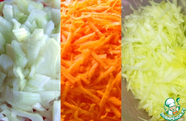Для того, чтобы процесс был НАМНОГО легче, я использую соковыжималку-шинковку, она перерабатывает 20 кабачков (порезанных крупными кусками) за 15 минут и всю морковь - за 5 минут. Единственно - не даром она называется "садовая" - удобнее всего пользоваться ей в саду, так как кухню потом долго отмывать придется.