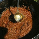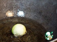 Теперь - ответственный момент: готовим наш казан. Ставим казан на печь и разводим в печке огонь, довольно сильный. Прокаливаем казан на огне и в горячую уже емкость наливаем растительное масло. Кидаем туда луковицу, жарим там минут 10 - и выкидываем безжалостно. (говорят - необходимо для очистки масла. По моему - оно и так чистое - но если надо, так надо).