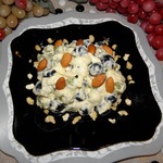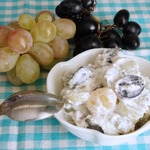 Изюминка этого простого салата заключается в нежном творожном креме, благодаря которому, обычный виноград превращается в изысканное лакомство.