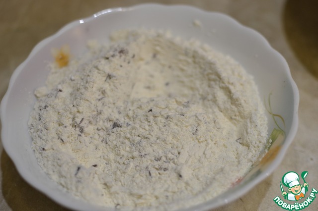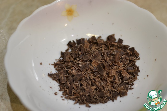 Просеянную муку смешиваем с разрыхлителем и тертым шоколадом