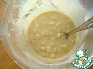Яблоки выкладываем в тесто и перемешиваем ложкой.