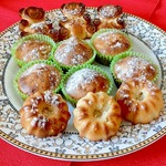 Вытряхнулись кексы легко. Дала остыть и присыпала сверху сахарной пудрой с корицей.