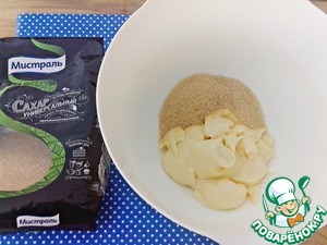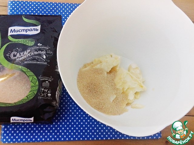 К сливочному маслу добавить сахар ( я использую тростниковый сахар ТМ Мистраль), взбить.
