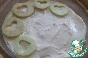 Яблоки очистить, удалить сердцевину и нарезать кружочками. Выложить яблоки на крем в один слой.