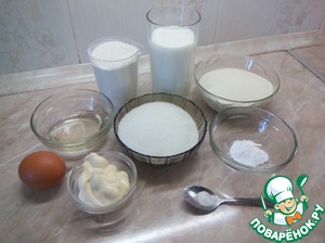 • Затем по очереди добавить остальные ингридиенты, каждый раз перемешивая: яйцо, майонез, ванильный и 200гр обычного сахара, разрыхлитель, муку и растительное масло.