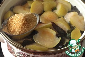 Залить водой и поставить на огонь. Довести до кипения и проварить все минут 10-15. В конце варки добавить сахар, перемешать, как только сахар растворится снять с огня.