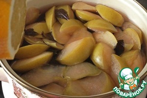 Сразу же добавить лимонный сок. Его кол-во засисит от начальной кислоты яблок и от личных вкусовых предпочтений, мне хватило 1 ч. л. перемешать и охладить напиток.