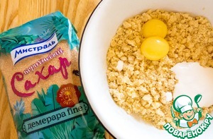 Теперь можно заняться тестом. Масло, сахар и муку перетираем в крошку. Я это делала руками.
