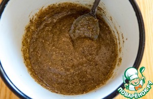 Тем временем наша основа готова. Достаем её из духовки и выкладываем на неё равномерно "ореховую пасту".