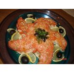 Хочу предложить невероятно вкусный салат из морепродуктов и рыбы. Это любимый салат моего мужа. Мы ели его в Крыму во время свадебного путешествия. И теперь в особо праздничных случаях я всегда его готовлю, правда, назывался он "Королевски й", и подавала я его в порционных креманочках, пока не увидела на другом кулинарном сайте обалденную идею оформления салата с тунцом, огромное спасибо за нее кулинару Птичка-сушиманка (Koolinar). Таким образом можно украсить любой салатик из морепродуктов.