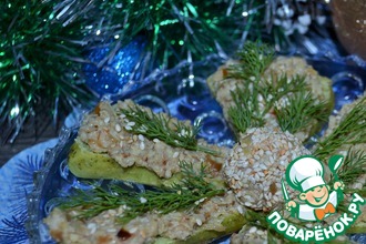 половину желатина влить в сырную начинку и тщательно перемешать,