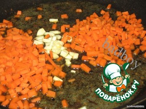 в том масле, где жарилась курочка, поджариваем чеснок и морковку. -