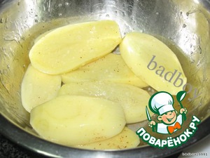 Картофель почистим, крупно нарежем, помоем, добавим специй и соль, смажем растительным маслом.