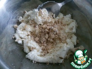 Измельчаем хлебцы руками, чтоб оставались маленькие кусочки. Добавляем к творогу