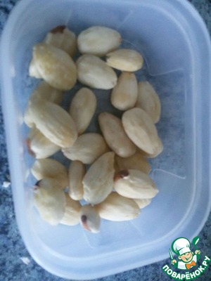 Миндаль заливаем кипятком, чтобы потом легче было очищать.