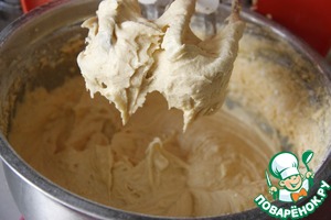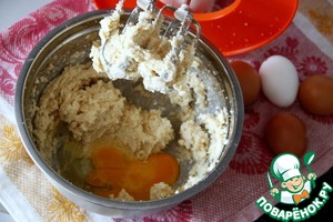По одному добавить в миску яйца, тщательно взбивая после каждого яйца.