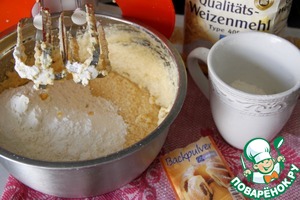 Муку предварительно просеять с разрыхлителем и вводить поочередно с молоком