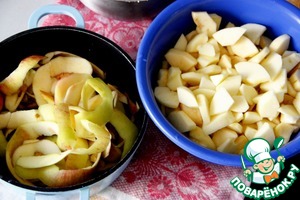 В результате обработки яблок у нас получится миска яблочных кусочков и кастрюля с кожурой.