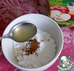 В сахарную пудру добавить корицу и яблочный сок (или лимонный).
