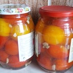 Простой, оригинальный и очень вкусный рецепт заготовки помидор. Помидоры получаются слегка сладковатыми, почти как свежие. Рецепт взят из интернета, опробован не первый год! Строят прекрасно, одна баночка простояла у меня 2 года. Хотя содержание уксуса небольшое. Угощайтесь!