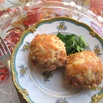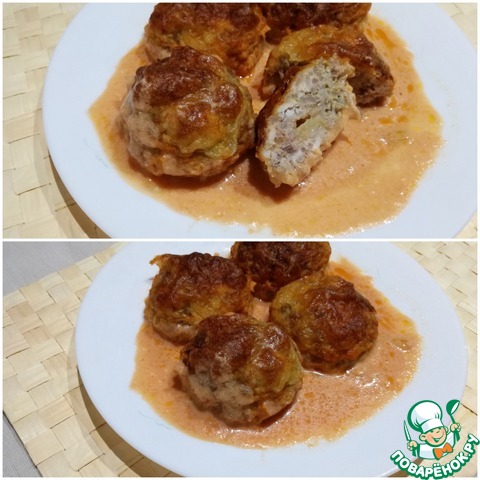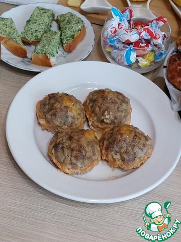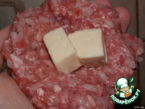 Сформировать на ладони кружок из фарша, положить сыр, придать форму шарика. -
