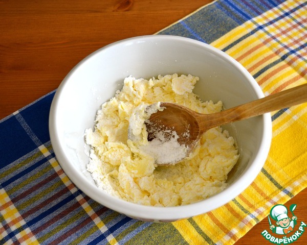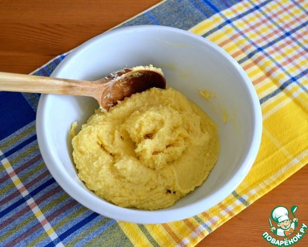 Отдельно слегка взбить с помощью вилки яйцо и осторожно ввести в масляную смесь. Перемешать до однородности. Добавить оба вида муки — миндальную и обыкновенную пшеничную... Ещё раз всё размешать до однородности. В конце добавить ликёр. Отставить крем «отдохнуть» пока мы будем заниматься тестом.