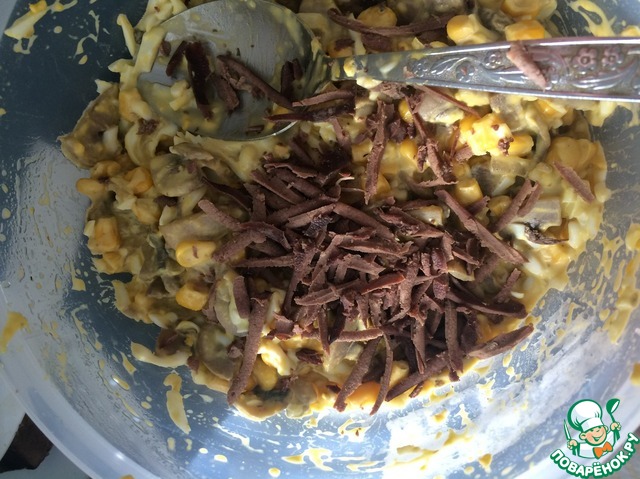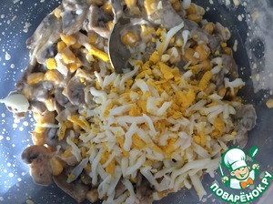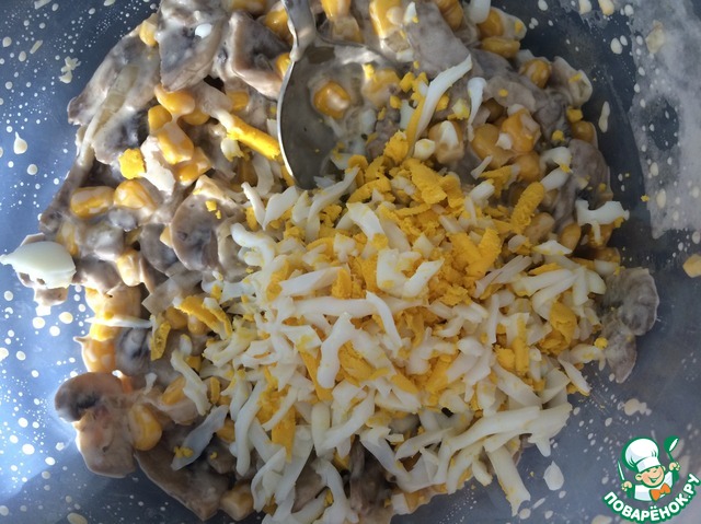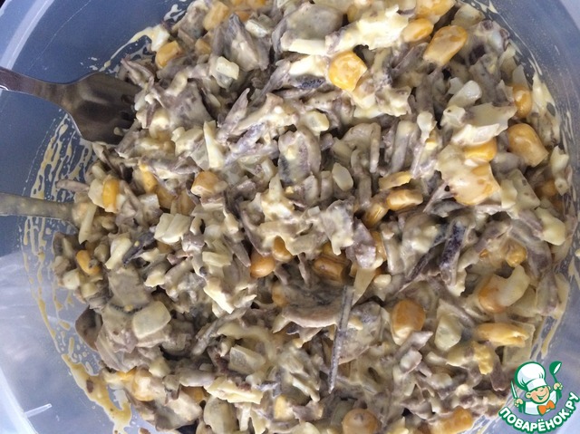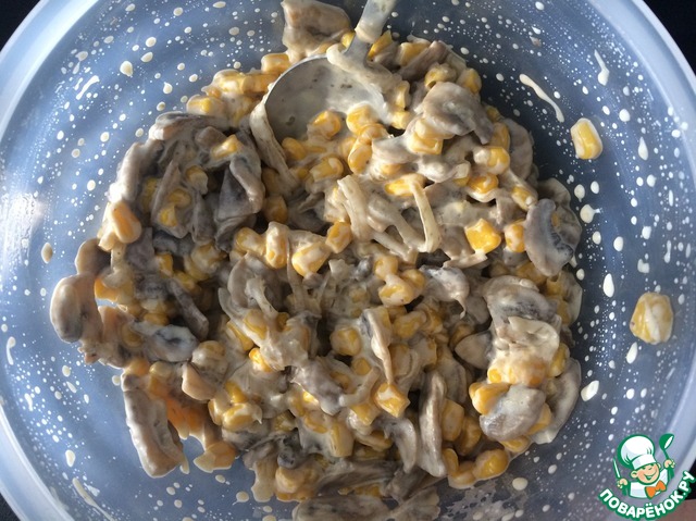 я же смешиваю всё. сначала грибы и кукурузу + майонез -