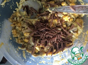 После тру на терке яйца, можно и порезать, кому как удобнее
