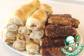 Тесто раскатать и уложить в форму размером 25Х35 см, смазанную маслом (можно положить бумагу для выпечки и смазать ее маслом).