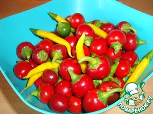 Самое "страшное" в данном рецепте это острый перец, вернее, его подготовка. У меня домашний перец, вот такой красивый.