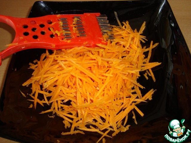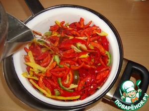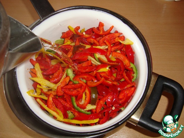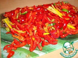 Моем перчик, очищаем от семечек и нарезаем соломкой. -