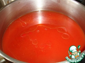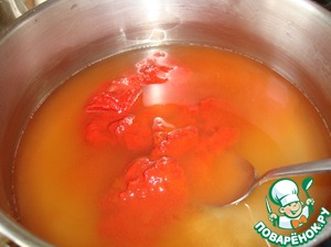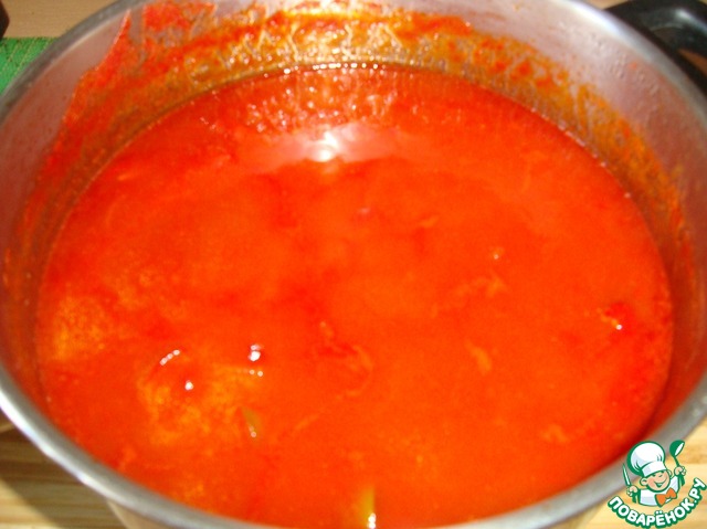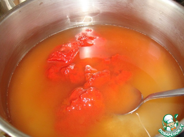Затем добавляем в воду томатную пасту. Перемешиваем.
