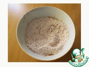 Муку просеять смешать с какао-порошком, кофе, разрыхлителем, добавить ванилин соль, хорошо перемешать. Частями добавить в яично-сахарно-масляную массу, постоянно перемешивая.
