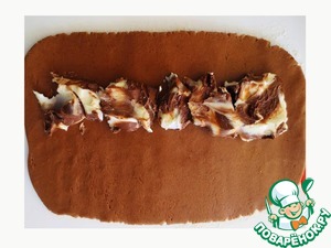 Раскатать из теста прямоугольный пласт, толщиной 3-4 мм.
