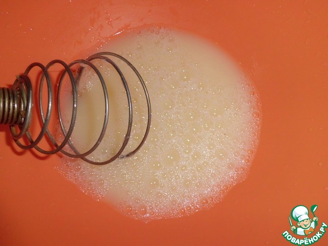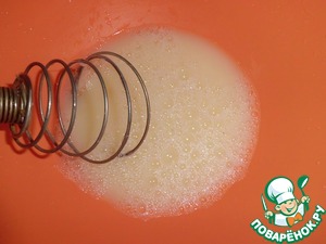Яйцо взбиваем со 150 мл. теплой воды, постепенно вводим муку.